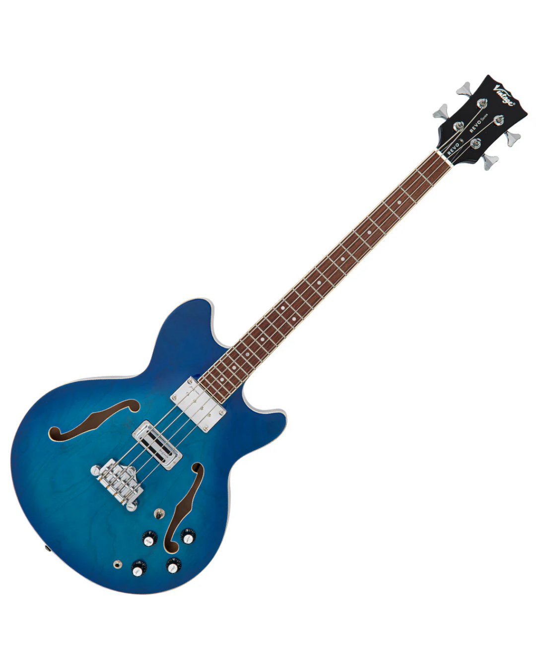 El Bajo Eléctrico Semi-Acústico Vintage VRS450BL en Blueburst es una joya dentro de la serie REVO de Vintage, ideal para quienes buscan un sonido potente y distintivo. Este bajo de cuerpo grande con doble cutaway está construido en arce, proporcionando características tonales semi-acústicas naturales y una excelente proyección de sonido.