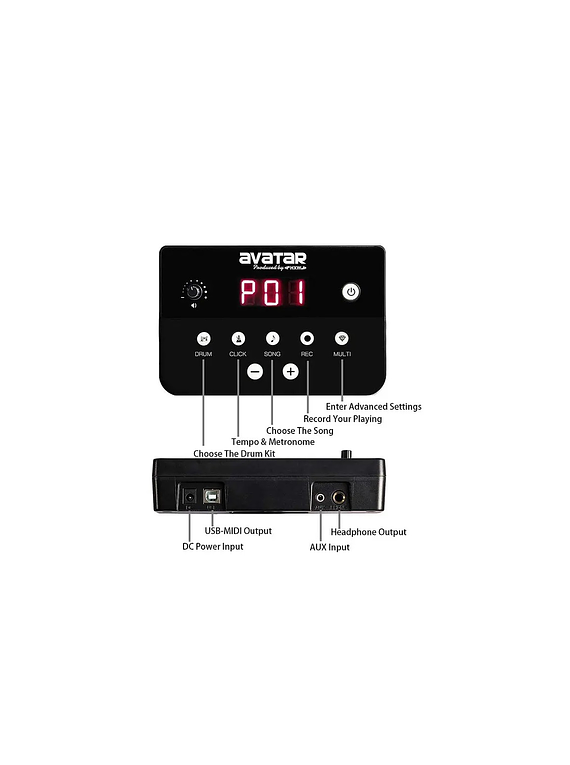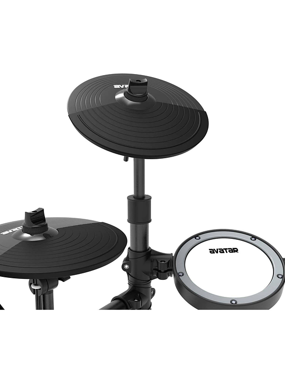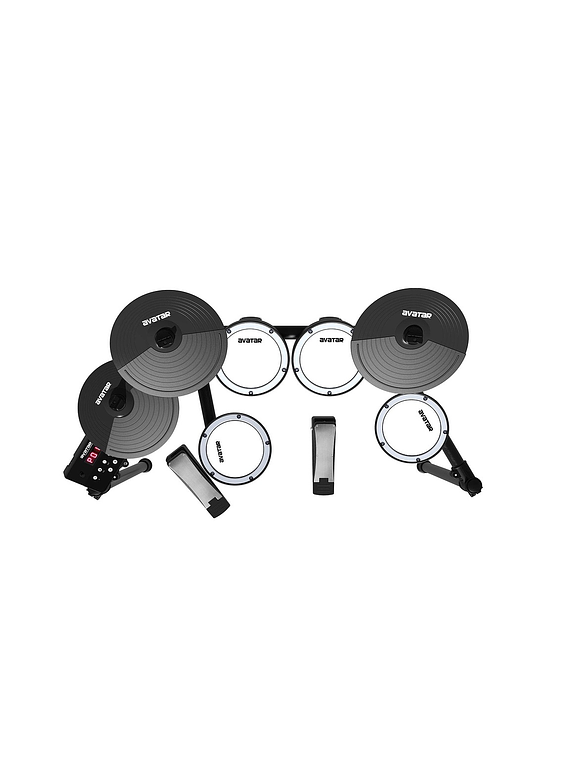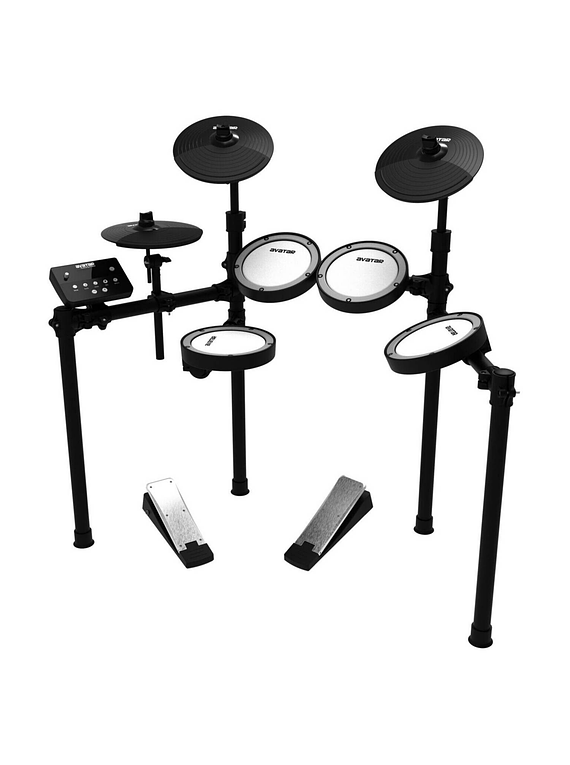 Este Kit cuenta con 4 pads de parche de malla de 7.5" (3 toms, 1 caja), y 3 platillos de 10 pulgadas, organizándose perfectamente en un sólido rack de metal. Además de dos pedales de disparo, con funcionamiento de bajo ruido para bombo y hi-hat, con disparador sensible, sensación natural, respuesta de alta velocidad, y excelentes sonidos.