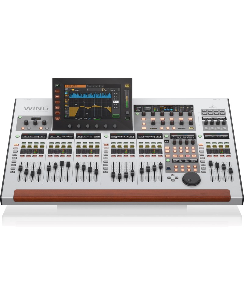 Con 374 entradas y 374 salidas, se requiere mucha conectividad digital. WING proporciona 3 puertos de red de audio AES50 SuperMAC para conectar cajas de escenario digitales o compartir hasta 144 entradas y 144 transmisiones de salida con otras consolas de mezcla. Hay 48x48 canales de audio USB y otros 64x64 canales de audio sobre IP (módulo AoIP opcional), además de E / S estéreo AES / EBU. La ranura para tarjetas de expansión WING, que incluye la tarjeta de grabación LIVE SD o tarjetas opcionales para varios estándares, como ADAT, MADI, DANTE y WSG, ofrece otros 64x64 canales de entrada / salida de audio.