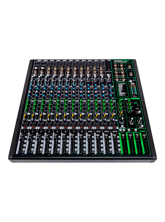 El Mackie ProFX16v3 cuenta con once preamplificadores de micrófono Onyx galardonados para capturar un audio impecable tanto en el estudio como en el escenario. Su ruido ultrabajo y hasta 60 dB de ganancia garantizan un amplio margen dinámico y claridad para cualquier micrófono.
